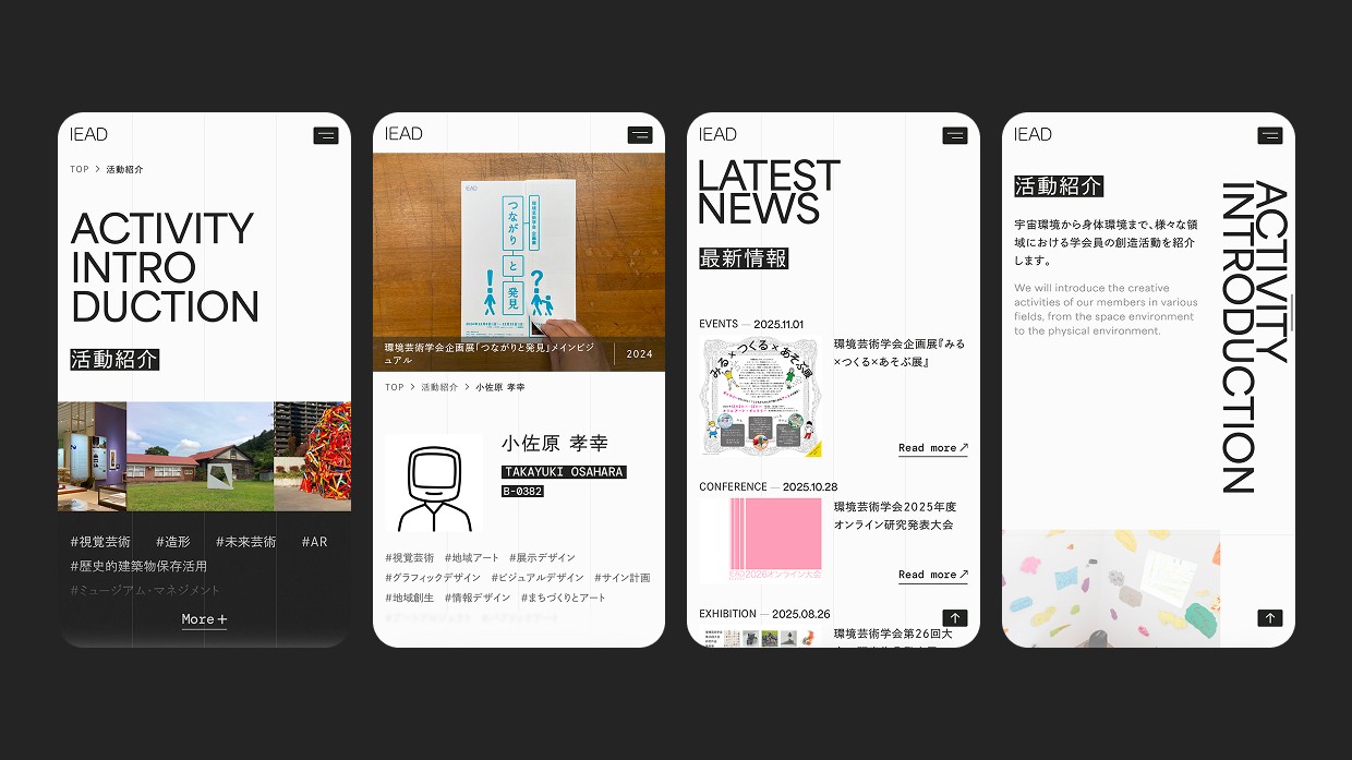 一般社団法人 環境芸術学会のWebサイトリニューアルプロジェクト。デザインコンセプト立案からアートディレクション、UX設計、モーション演出設計まで一気通貫で担当しました。