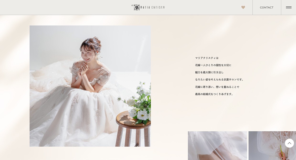 ウェディングドレスショップ、マリアクリスティのWebサイトリニューアルプロジェクト。デザインコンセプト立案からアートディレクション、UX戦略、UI設計、モーション演出設計まで一気通貫で担当しました。